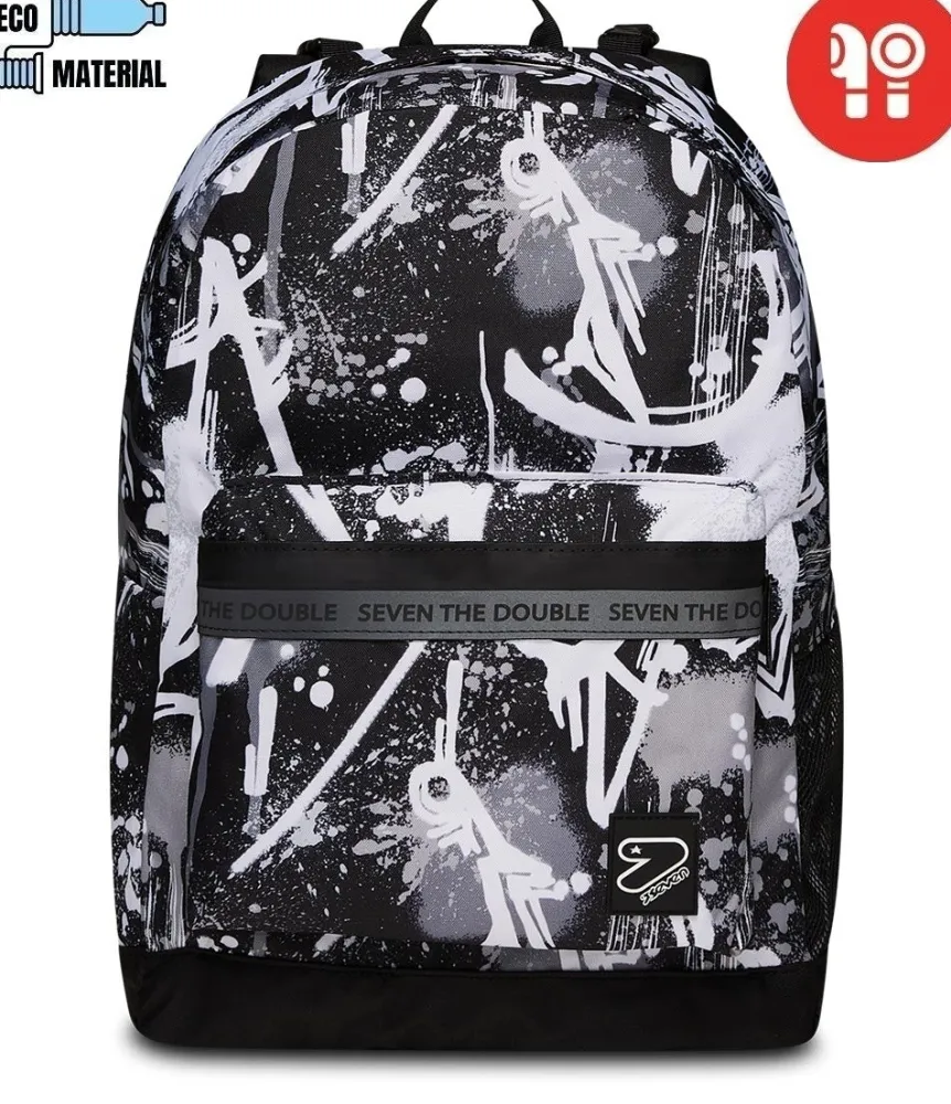 Con Questo Zaino Reversibile Seven The Double, Che Include Gli Earphones Wireless, Hai 2 Zaini In 1: Il Primo In Fantasia Con Zip Rifrangente, L’Altro In Tinta Unita. Per Rigirarlo Tutte Le Volte Che Vuoi, Staccando Lo Schienale, Ti Bastano Poche Semplici Mosse. E Realizzato In Tessuto 100% Poliestere Riciclato, Certificato Grs, Ricavato Da 29,5 Bottiglie In Pet Da 500 Ml Ciascuna, Garantendo Tutti Gli Standard Qualitativi Dei Nostri Materiali. Entrambi I Lati, In Fantasia E In Tinta Unita, Hanno Una Comoda Tasca Frontale E Quello In Fantasia Ha Anche Una Tasca Laterale In Rete Ed Elastico Porta Borraccia. Infine Lo Schienale E Imbottito E, Insieme Agli Spallacci Imbottiti E Traspiranti, Rende Lo Zaino Comodo Da Indossare Sulle Spalle.